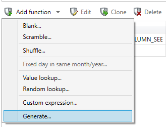 In the masking of Privacy there are two functions which directly use seed files. In order to access this, add the Generate… container function on the column of your choice, and then select either Value from seed file or Value from multi-column seed file.
