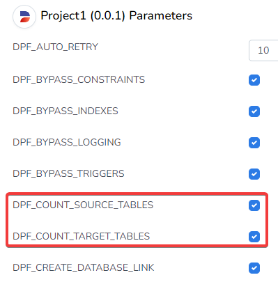 Runtime → Groups → Environment → Settings → Disable DPF_COUNT_SOURCE_TABLES and DPF_COUNT_TARGET_TABLES