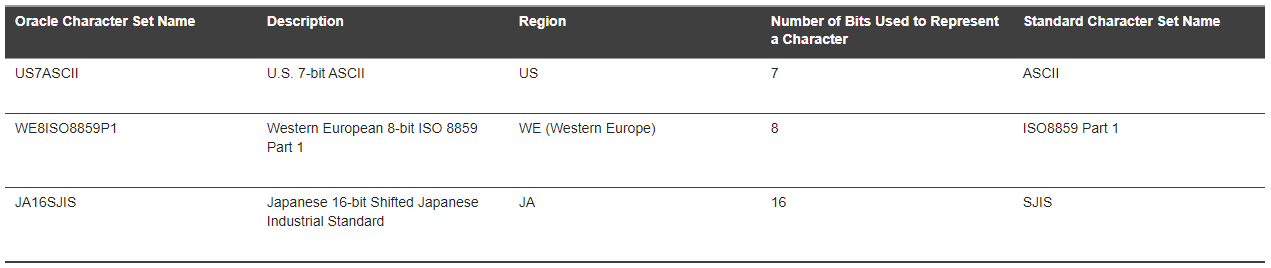 Some databases archetype (such as Oracle) construct their own charset names and will display these when queried for. These are compound names, and thus not the same as what your OS uses. These cannot be supplied to Privacy directly.