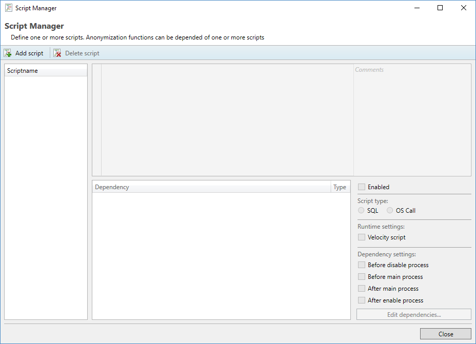 - Click OK in the dependency editor and Close in the Script manager.