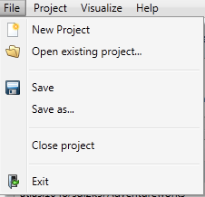 Several features of the application can be started through the menu. The menu contains four options categories, each described in the following sub-chapters.