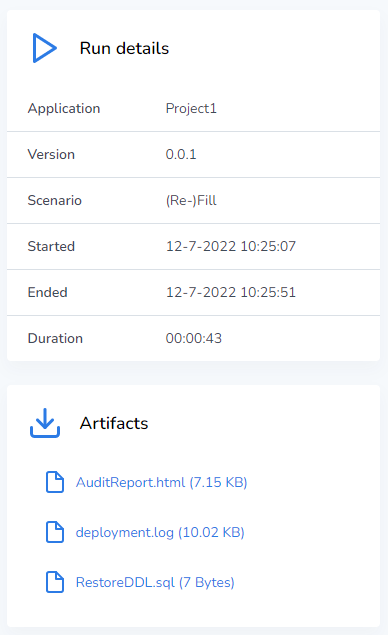 If a run finishes correctly the user interface will alter slightly, and you should see a short summary of the run and the artifacts added to the right side of the screen.