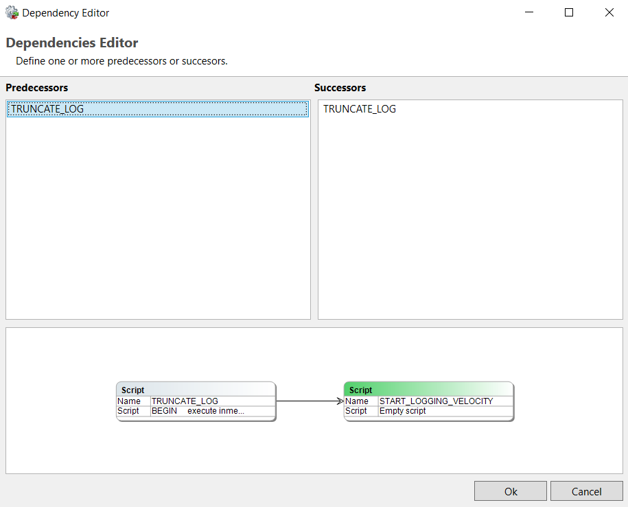 The execution sequence between scripts can also be set by choosing 'Edit dependencies'. This functionality only works when scripts are executed in the same process part. For example, a script executed during the Before Main Process step cannot have a dependency with a script executed during the After Main Process step, as their execution is already logically separated.
