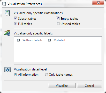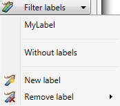 Labels can be assigned to tables by clicking the right mouse button and selecting one or more labels. This can also be done by selecting multiple tables and assigning labels to them.