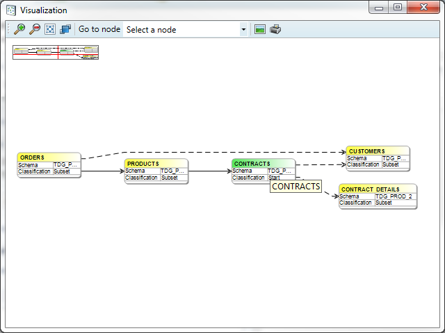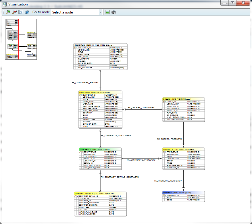 The navigation screen is shown in the left upper corner of the screen. By clicking in it that part of the data model will be centred.