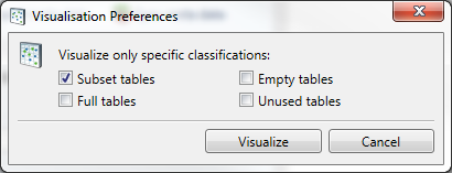 In the resulting screen choices can be made what tables to show. By default only Unused tables are hidden.
